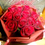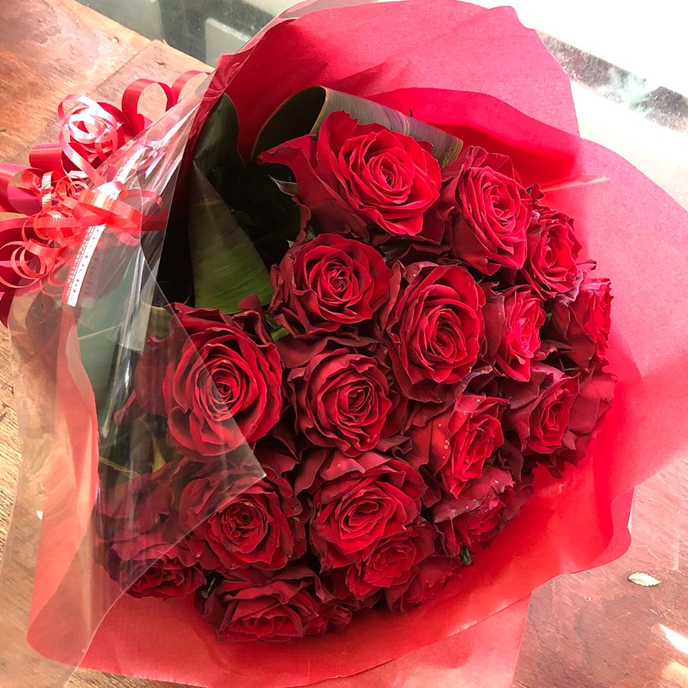 情熱と愛情を込めた、鮮やかな赤バラの花束が